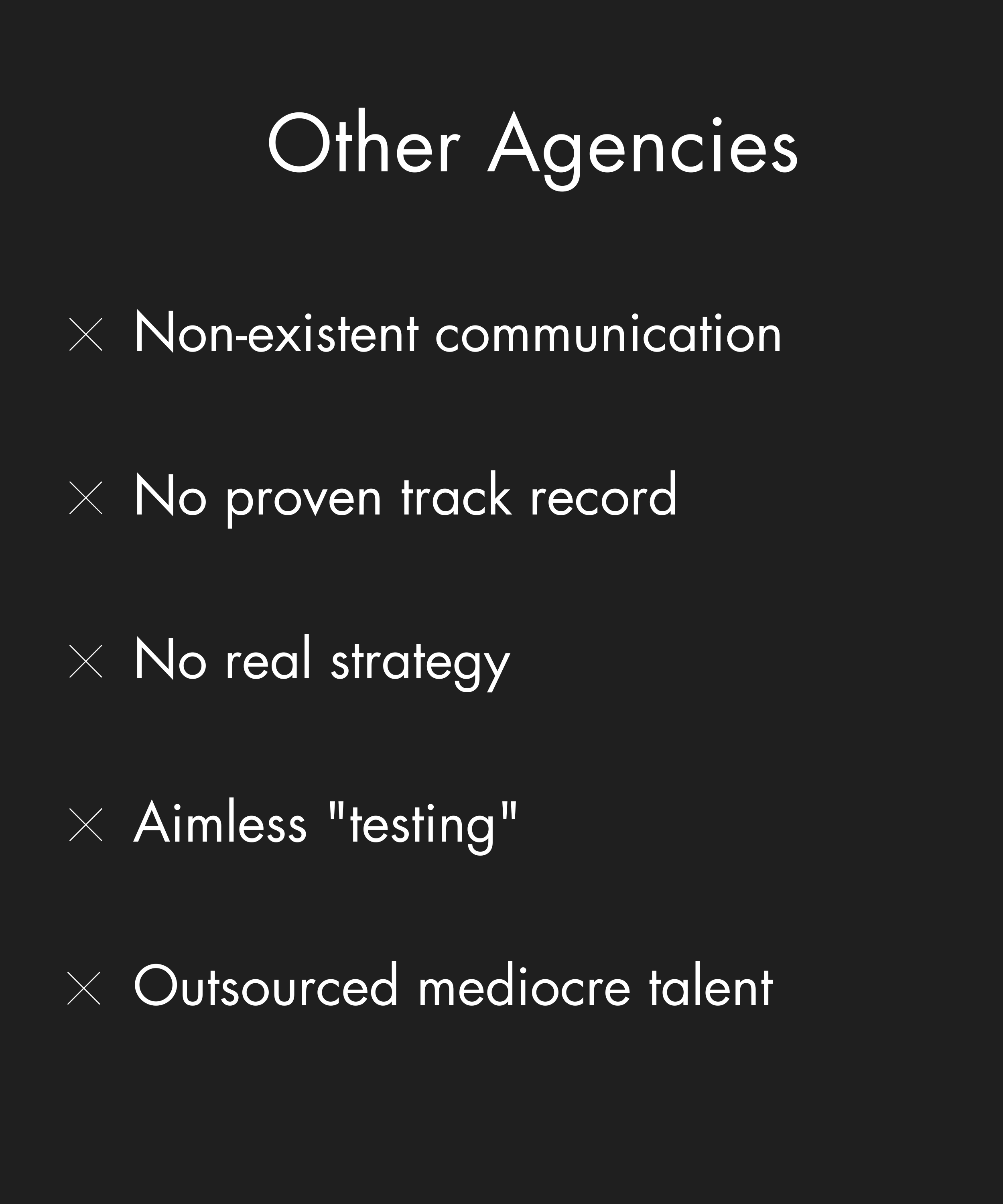 But based on our clients, who usually have been burned by multiple agencies before: